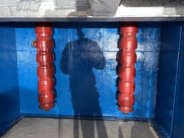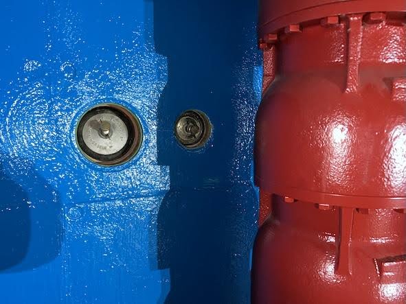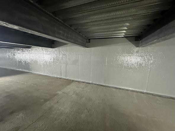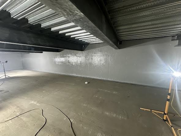 We primed the walls with a damp-tolerant primer, applied at 150 microns thickness. The primer coat, first after preparation, penetrates steel or concrete to seal pores and create a smooth, uniform surface. The primer coat is critical for ensuring that the relining system bonds properly, lasts longer, and resists corrosion or leaks.